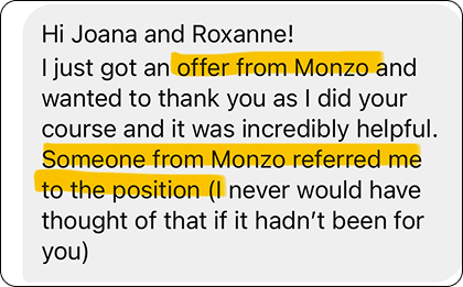 Our members have landed roles at companies like Google, Salesforce, and TikTok. We focus on real outcomes - helping you stand out, get interviews, and grow in your tech career with the support of experts and peers who’ve done it before.